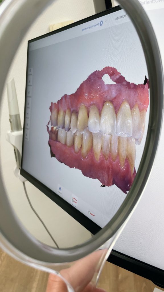 Nach der digitalen Abdrucknahme wird Ihre individuelle Zahnkorrektur digital geplant. Auf Basis der Planung wird eine Serie leicht unterschiedlicher Aligner angefertigt. Diese kommen dann nacheinander zum Einsatz. Ist der jeweilige Behandlungsschritt abgeschlossen, wird die nächste Zahnschiene eingesetzt, bis die gewünschte Korrektur der Zahnstellung schließlich erreicht ist.